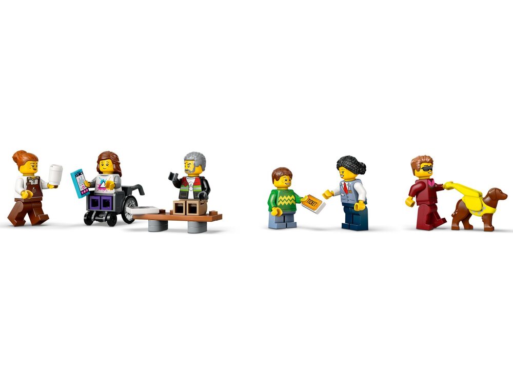 Модель трамвая LEGO® с забавными аксессуарами – В набор входят аксессуары для минифигурок LEGO, такие как инвалидная коляска, игрушечная кофейная чашка, газета, телефон и билет.