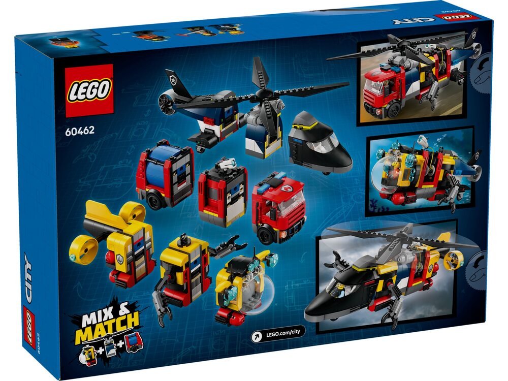 LEGO City Ремикс вертолета, пожарной машины и подводной лодки (60462): Три модели для захватывающих приключений.