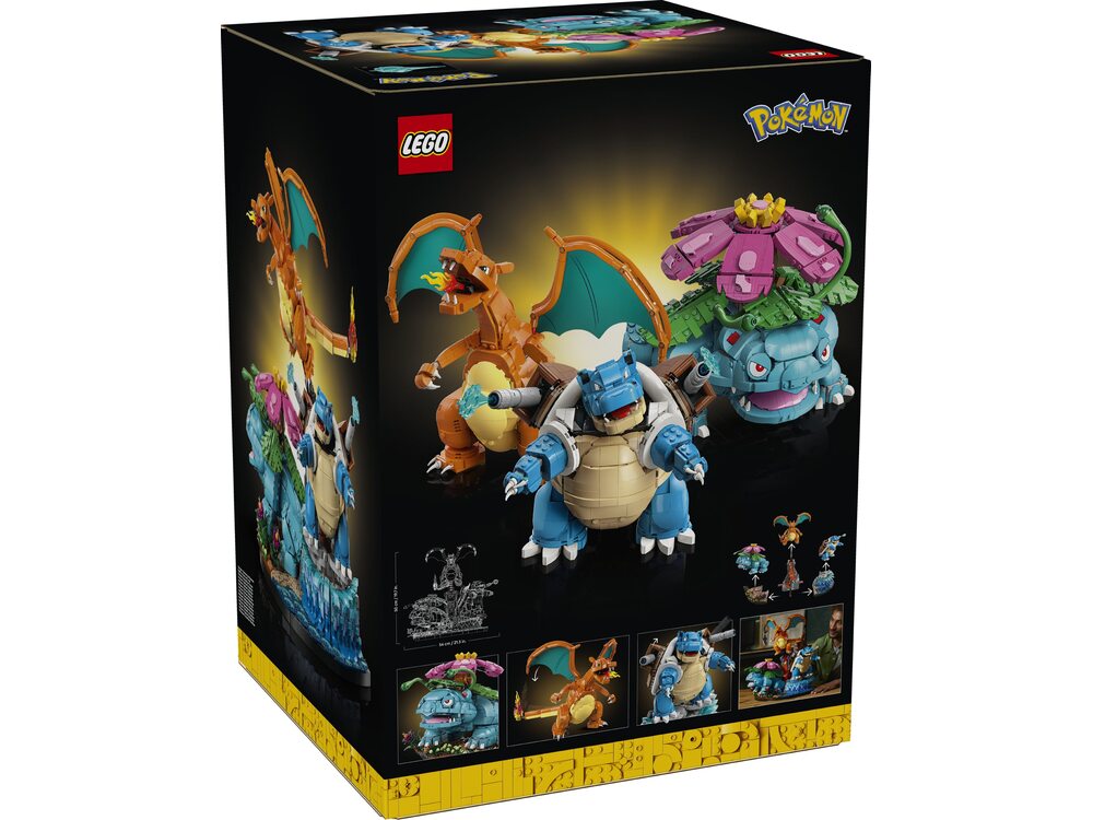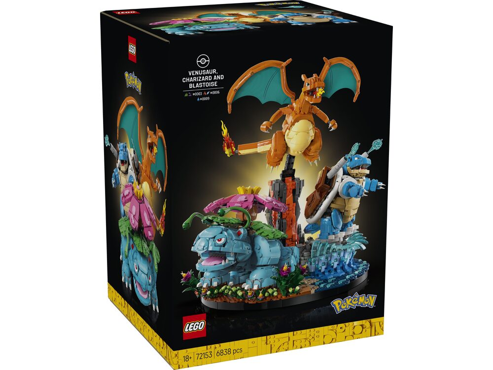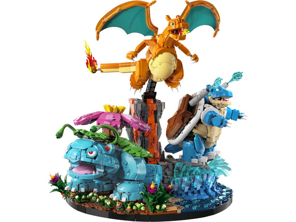 Покемоны Венузавр, Чаризард и Бластойз LEGO® Pokémon™ (72153) — грандиозный коллекционный набор для взрослых, воссоздающий трёх легендарных стартовых покемонов региона Канто в их финальных эволюциях. Этот масштабный проект создан для фанатов Pokémon и ценителей впечатляющих интерьерных моделей LEGO.