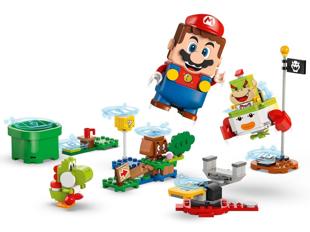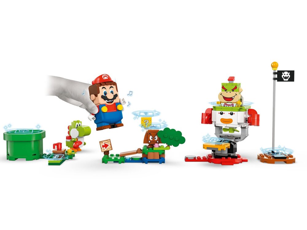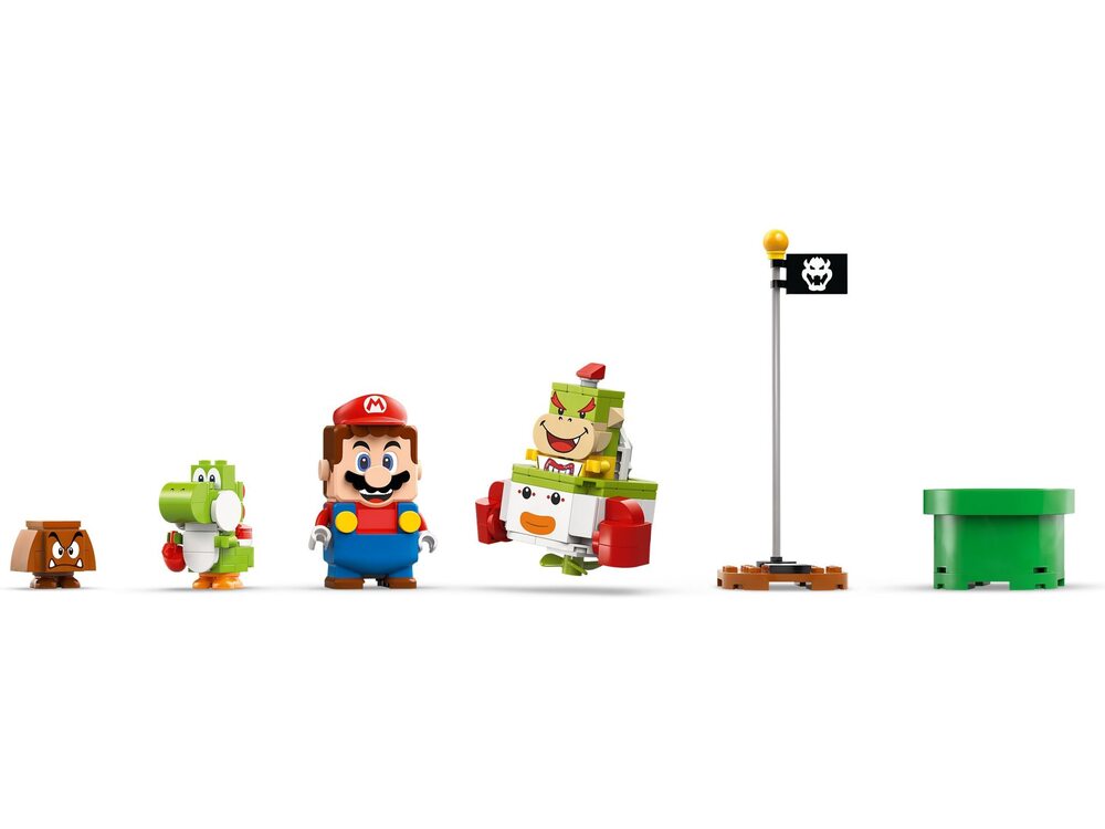 Игровой набор «Приключение» — начните у стартовой трубы, поприветствуйте Йоши, победите Гумбу, наступите на блок со знаком «?», сразитесь с Боузером-младшим и закончите у ворот.