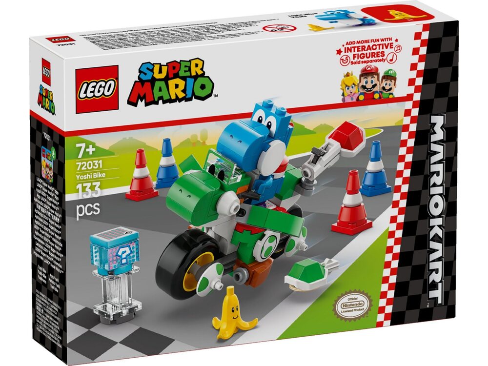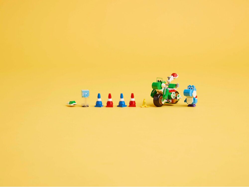 Игровая зона для гонок — катайтесь на Йоши-байке между конусами, стреляйте снарядами и маневрируйте вокруг банана для ещё более динамичной игры.