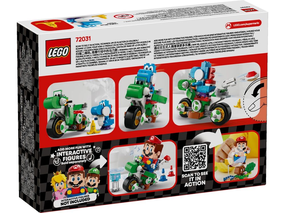 Интерактивные эффекты — используйте Йоши-байк с фигурками LEGO® Mario™, LEGO® Luigi™ или LEGO® Peach™ (продаются отдельно), чтобы активировать звуковые эффекты, получить цифровые бонусы и улучшить игровой процесс.