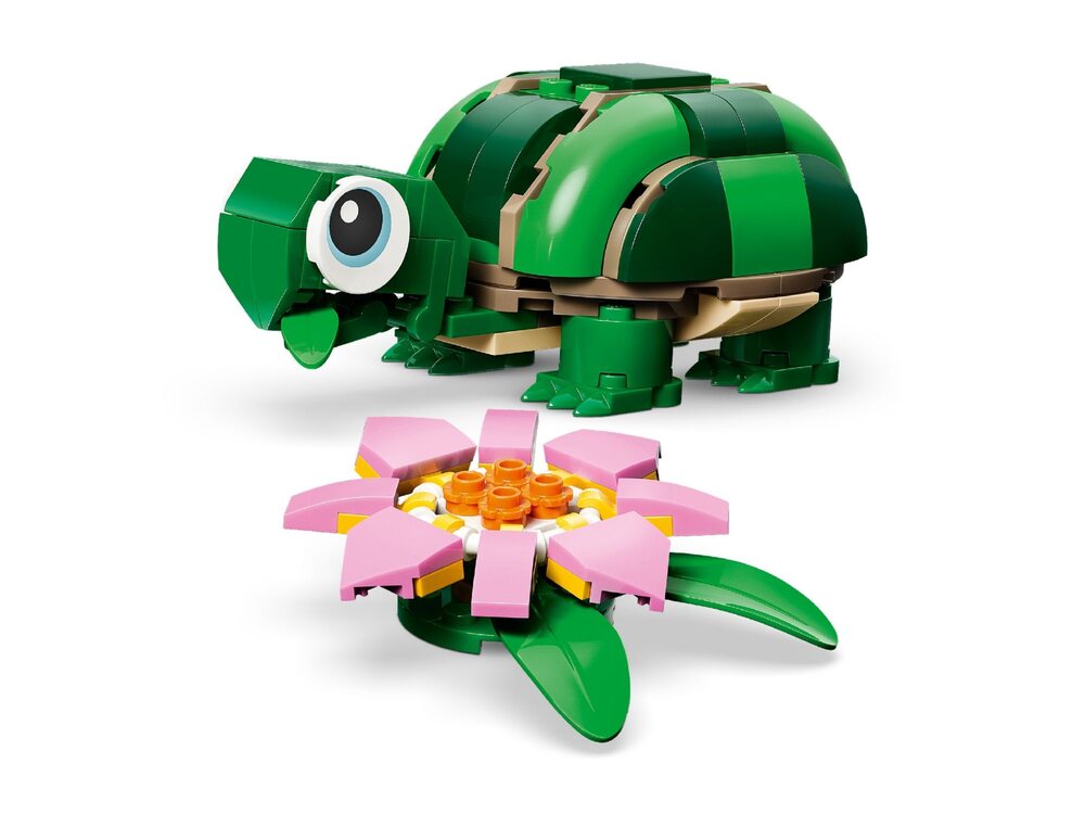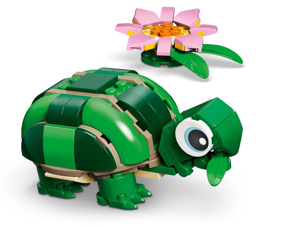 Черепашка з квіткою латаття (31377) — набір LEGO® Creator 3 в 1, який дозволяє дітям від 7 років вигадувати власні історії про тварин і змінювати моделі за своїм бажанням. З одного комплекту деталей можна зібрати одразу три різні фігурки.