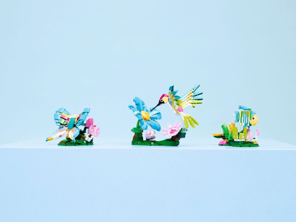 Використовуючи ті самі елементи, можна зібрати рухомого колібрі у польоті на підставці з квітами, потім перебудувати його в метелика з розкривними крилами або в тропічну рибку на підставці з підводними рослинами. Кожна модель виконана з акцентом на природну естетику та чудово підходить для демонстрації.
